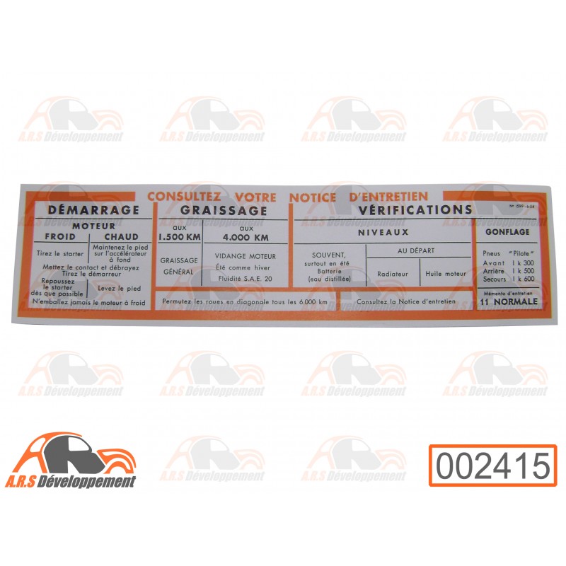 Autocollant volet boite à gants Citroën TRACTION 11 Normale -2415-
