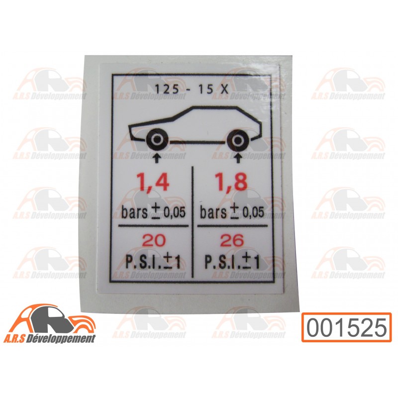 Autocollant pression des pneus 125x15 de Citroën 2cv Dyane Méhari Ami
